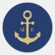 Nautical Navy Blue Gold Anchor Wedding MONOGRAMS Classic Round Sticker