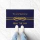 Nautical Navy Blue Gold Rope Custom Names Doormat