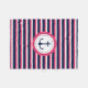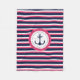 Nautical Navy Blue Hot Pink Stripes Anchor Design Fleece Blanket