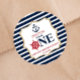 Nautical Navy Blue ONE First 1st Birthday Party Classic Round Sticker