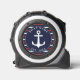 Create a personalised nautical tape measure as a gift for a boat owner. Template makes it easy to type a boat name and year or another text. Navy blue, red and white design feature anchor and hand-drawn stripes.