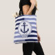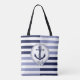 Nautical navy blue ship anchor, navy blue stripe tote bag
