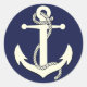 Nautical navy blue silhouette anchor rope classic round sticker