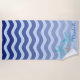 Nautical Navy Blue Stripe Waves Starfish Beach Towel