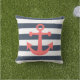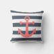 Nautical Navy Blue Stripes Coral Anchor Cushion