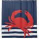 Nautical Navy Blue Stripes Red Crab Shower Curtain
