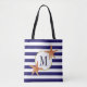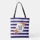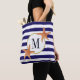 Nautical Navy Blue Stripes Starfish Monogram Beach Tote Bag