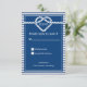 Modern nautical wedding reply design featuring a whimsically romantic white heart knot displayed inside a navy blue border with rope accents and stripes. White typography. Classic navy blue and white colour scheme.