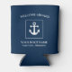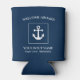Nautical Navy Blue Welcome Aboard Boat Name Anchor Can Cooler