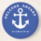 Nautical Navy Blue Welcome Aboard Boat Name Anchor Coaster