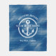 Nautical Navy Blue Welcome Aboard Boat Name Anchor Fleece Blanket