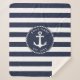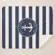 Nautical Navy Blue White Anchor Boat Name Sherpa Blanket