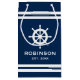 Nautical navy blue & white stripe wedding gift bag for bride and groom, guests, friends, family etc. Add your own party favours, gifts and goodies. Small, medium and big sizes. Customisable stringed bags with family name, date of marriage and old ship wheel logo. Blue and white or customisable colours. Classy typography template with stylish typography. Create beautiful bags for just married couple, guests, bridesmaids, bride, groom, groomsmen, family etc.