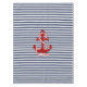 Nautical Navy Blue White Stripes and Red Anchor Tablecloth