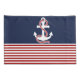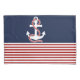 Nautical Navy blue White Stripes and White Anchor Pillowcase