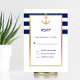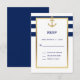 Elegant custom RSVP nautical wedding cards. Navy blue and white stripes with faux gold frame and anchor. Perfect any destination/nautical/summer wedding theme. Editable cards - easy to add your info or changed text font, colour and size.