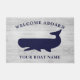 Nautical Navy Blue White Welcome Aboard Boat Name Doormat. Personalise this New England nautical beach house-themed doormat with your boat name. Set features a popular whitewashed distressed weathered wood look with a whale. Custom orders available at truullc@gmail.com