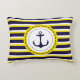 Nautical Navy Blue Yellow Stripes Anchor Design Decorative Cushion