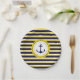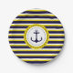 Nautical Navy Blue Yellow Stripes Anchor Design Paper Plate