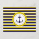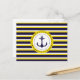 Nautical Navy Blue Yellow Stripes Anchor Design Postcard