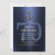 Nautical Navy Blue Gold Anchor 70th Birthday Party Invitations.