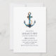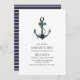 Navy blue stripe nautical anchor invitations for a bachelorette party printed in coordinating navy blue ink. Customise with your party information. The reverse side of the invitation is a nautical navy blue and white stripe.