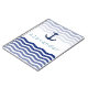 This custom notebook features a nautical design with a navy blue coloured anchor printed near the centre. Sea waves appear near the top in a pale blue colour, with darker waves floating across the bottom. A sample name is printed beneath the anchor. You can personalise the notebook and include your own custom name or message.