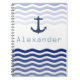 Nautical Navy Waves and Anchor Personalised Name Notebook
