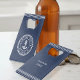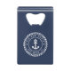 Perfect for a new boat owner or captain, this custom bottle opener in navy blue features your boat name and ship's registry curved inside a nautical rope badge with an anchor illustration inside. Personalise the reverse side with the captain's name, contact info, or your custom message, accented with rope stripe detailing.