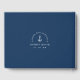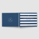 Modern and minimalistic nautical themed guest book design with a bold navy and white stripe design and white ocean anchor icon. Customised with name and date. The reverse side features a navy background colour with modern nautical crest design. This guest book is great for nautical themed weddings, baby shower, birthdays and more.