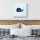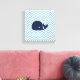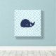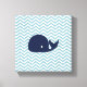 8" x 8" Nautical themed wrapped canvas print. Dark blue whale on light blue and white chevron patterned background. Perfect for the nautical themed nursery.