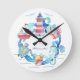 Nautical Ocean Animals Boat and Lighthouse Round Clock