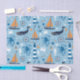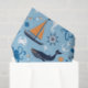 Ocean and nautical theme design features whales, orange sailboats, octopus, crabs, seahorses, ships wheels, anchors, lighthouses, and more on a pretty light blue background.
