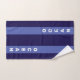 Elegant nautical ocean text on navy blue and ocean blue striped Towel Set. Text can be personalised.