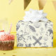 Add a nautical touch to any gift with this patterned wrapping paper. It has an all over pattern of simple nautical illustrations including assorted fish, sea turtles, old ships, ships wheels, shells, nautical stars and crossed cannons. The dark indigo blue illustrations are in the style of vintage sailor tattoos and are set against a cream or ivory white background.