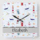 Nautical Pattern, Marine Pattern, Your Name Square Wall Clock