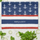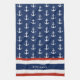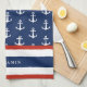 Nautical Personalised Navy Blue Red White Anchor Tea Towel