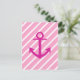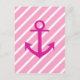 Nautical Pink And White Stripes Fuchsia Anchor Postcard