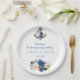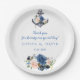 Nautical Pink Blush Blue Floral Anchor Wedding Paper Plate
