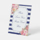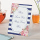This elegant sign will tell your guests where to place their recipe cards they bring to the bridal shower. The nautical themed design features navy blue and white stripes accented by a blue anchor and blush pink roses.