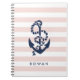 Nautical Pink Stripe & Navy Anchor Personalised Notebook
