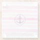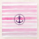 Beautiful glass coaster with pink watercolor stripes pattern and anchor.