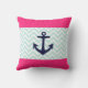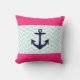 Nautical Pink White Mint Chevron Anchor Pattern Cushion