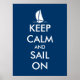 Nautical poster with ship | Keep calm and sail on | Vintage WII slogan parody. Make your own spoof with the help of this Keep calm and carry on template. Background colour can be customisable from navy blue.