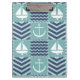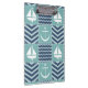 A quilt inspired pattern of stormy turquoise squares, decorated with a white sailboat and anchor, and deep navy blue squares, accented with paler blue chevrons and waves, is accented by white stitching to create a classic nautical feel.