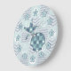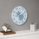 A quilt inspired pattern of stormy turquoise squares, decorated with a white sailboat and anchor, and deep navy blue squares, accented with paler blue chevrons and waves, is accented by white stitching to create a classic nautical feel. A starfish and a seashell mask the design in the centre, while a different style of starfish frames the numbers for this clock.
