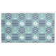 A quilt inspired pattern of stormy turquoise squares, decorated with a white sailboat and anchor, and deep navy blue squares, accented with paler blue chevrons and waves, is accented by white stitching to create a classic nautical feel.