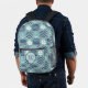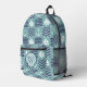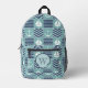 A quilt inspired pattern of stormy turquoise squares, decorated with a white sailboat and anchor, and deep navy blue squares, accented with paler blue chevrons and waves, is accented by white stitching to create a classic nautical feel. Customise the initial on the front pouch of this backpack with your own monogram to make this accessory uniquely yours.
