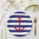 Nautical Red Anchor on Blue and White Stripes Paper Plate