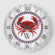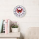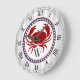 Nautical red crab and grey stripes monogram large clock